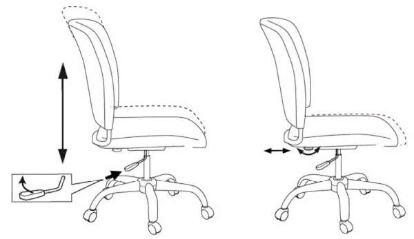 Глубина сиденья регулируется за счет перемещения спинки вместе с опорой взад-вперед.