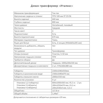 Диван-трансформер Италмас (Аквилон) продается в интернет-магазине v-volgograde-mebel.ru по цене 73 376 руб. Есть доставка по Волгограду и Волгоградской области. Возможность подъема на этаж и сборки уточняйте у менеджера по телефону 8(800)505-27-11.