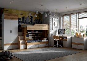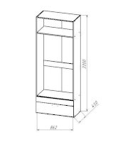 Шкаф двухдверный. Сверху антресоль, открывается вверх на газлифте. Внутри полка, выдвижная штанга, на боковинах крючки для одежды. Внизу ящик, направляющие НПВ шариковые.
